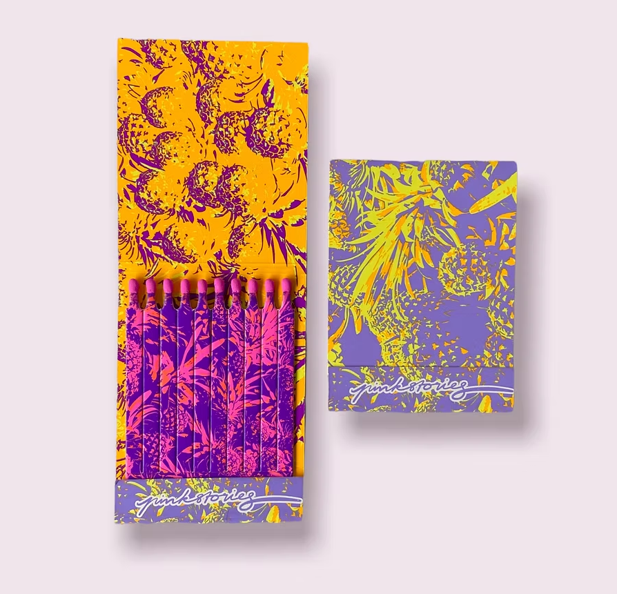 Carnet d'allumettes avec dix allumettes en carton imprimé.
